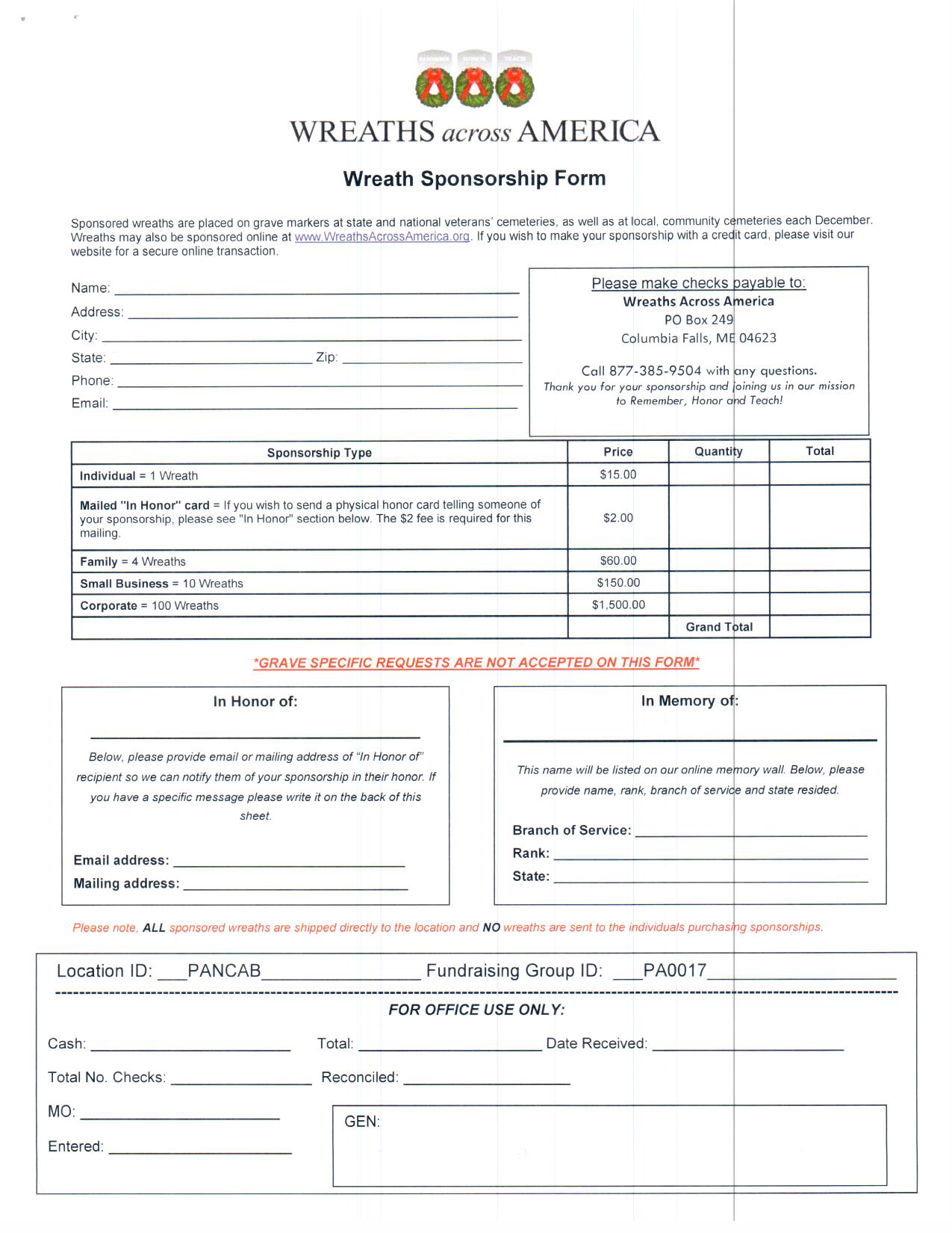 Wreath Sponsorship Form